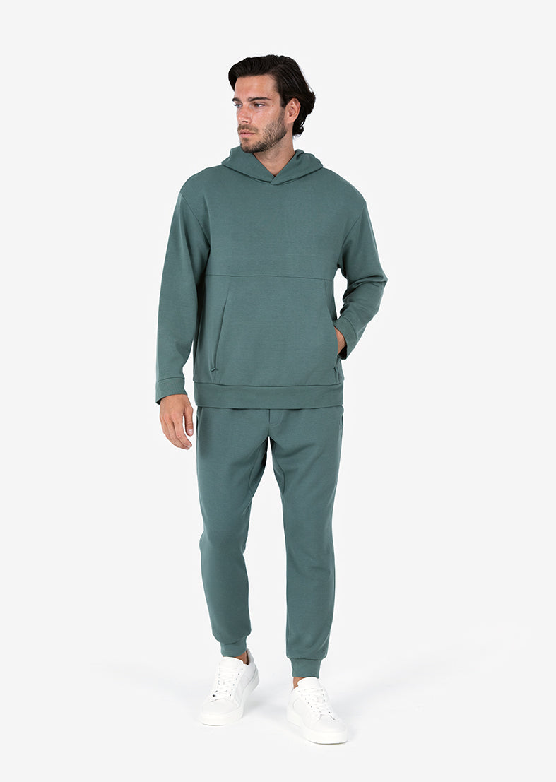 Elevate your comfort with our Elevated Sweat Hoodie, crafted from our signature modal-blend knit with a sand washed finish for a silky hand feel. Designed with a one-piece folded hood and concealed front zip pockets, this hoodie offers a balance of comfort and casual cool.