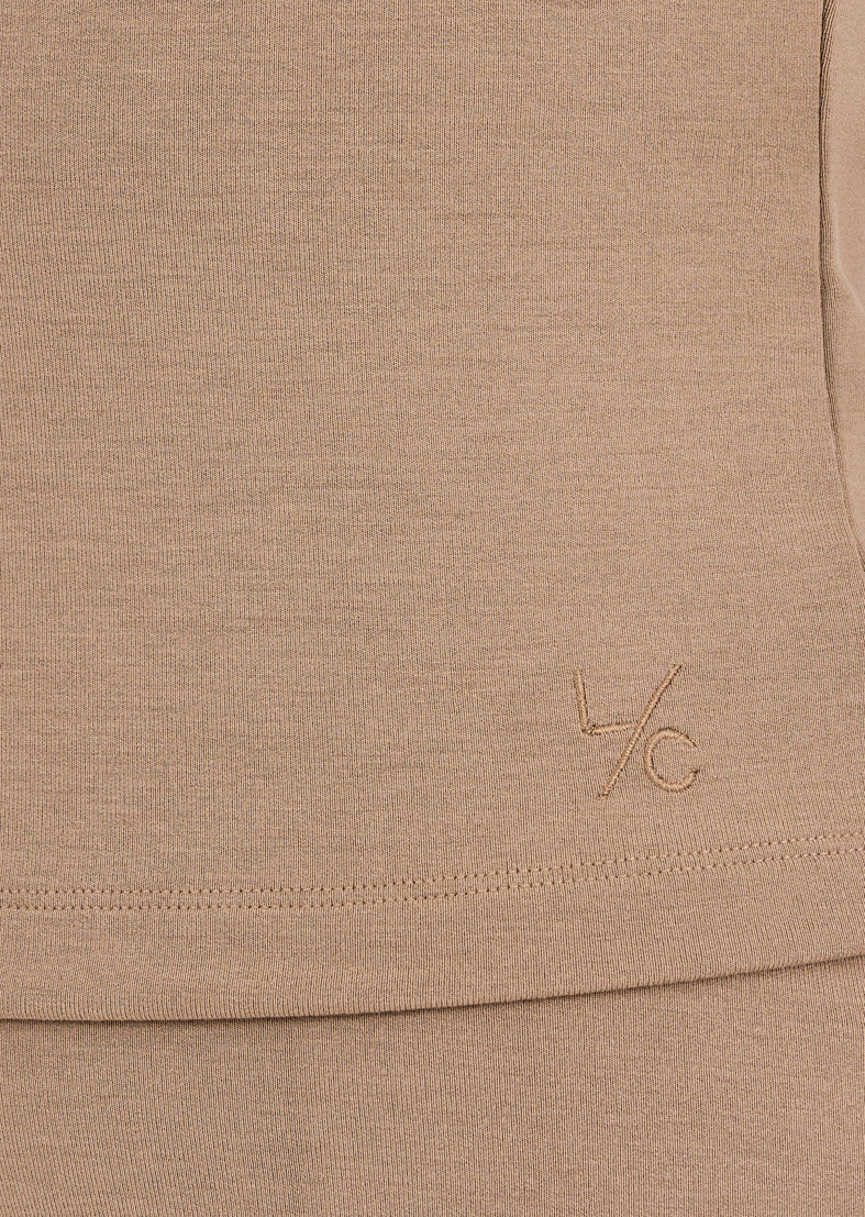 With a clean, minimal-seam construction, slim fit, funnel neck, and subtle front ruching, this timeless piece delivers modern sophistication and everyday comfort, finished with a discreet embroidered logo at the side hem.