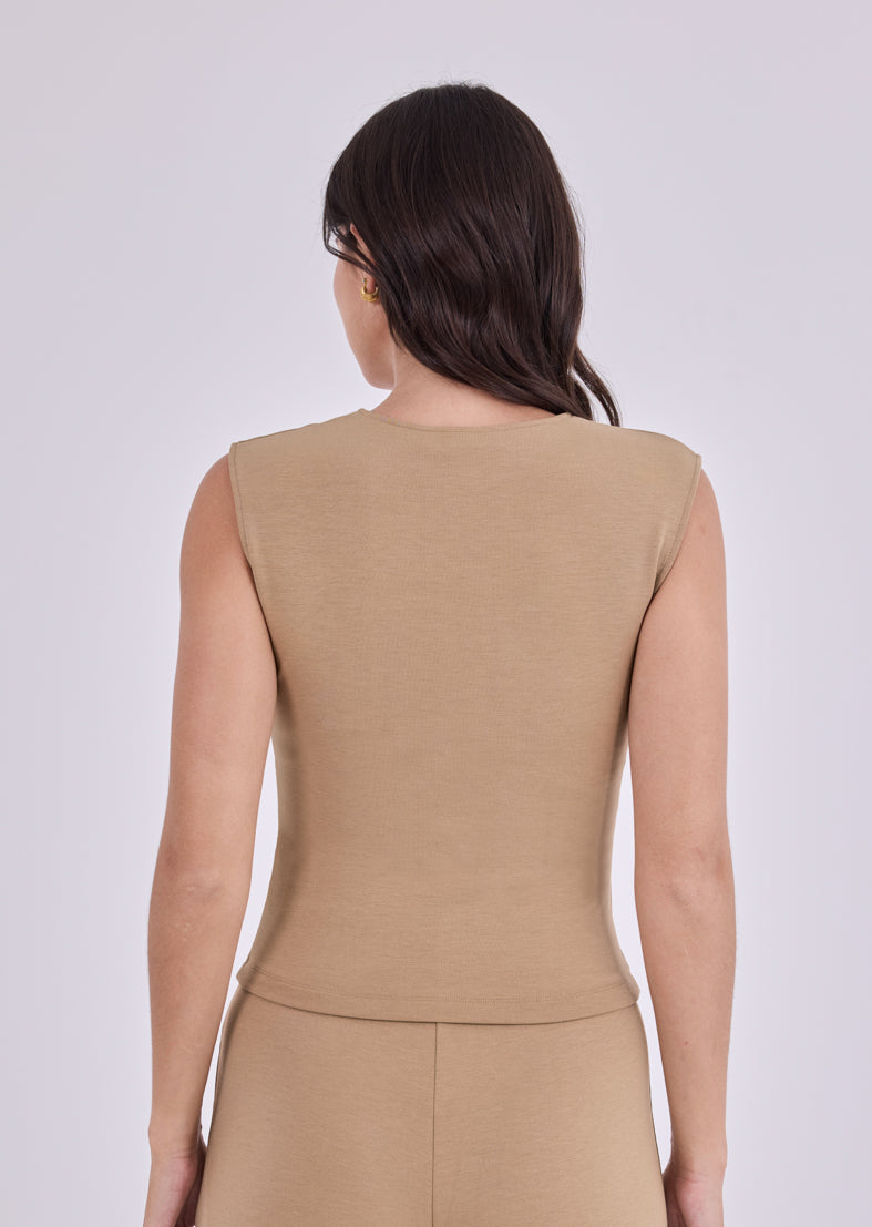 Women's Button Up Top Camel